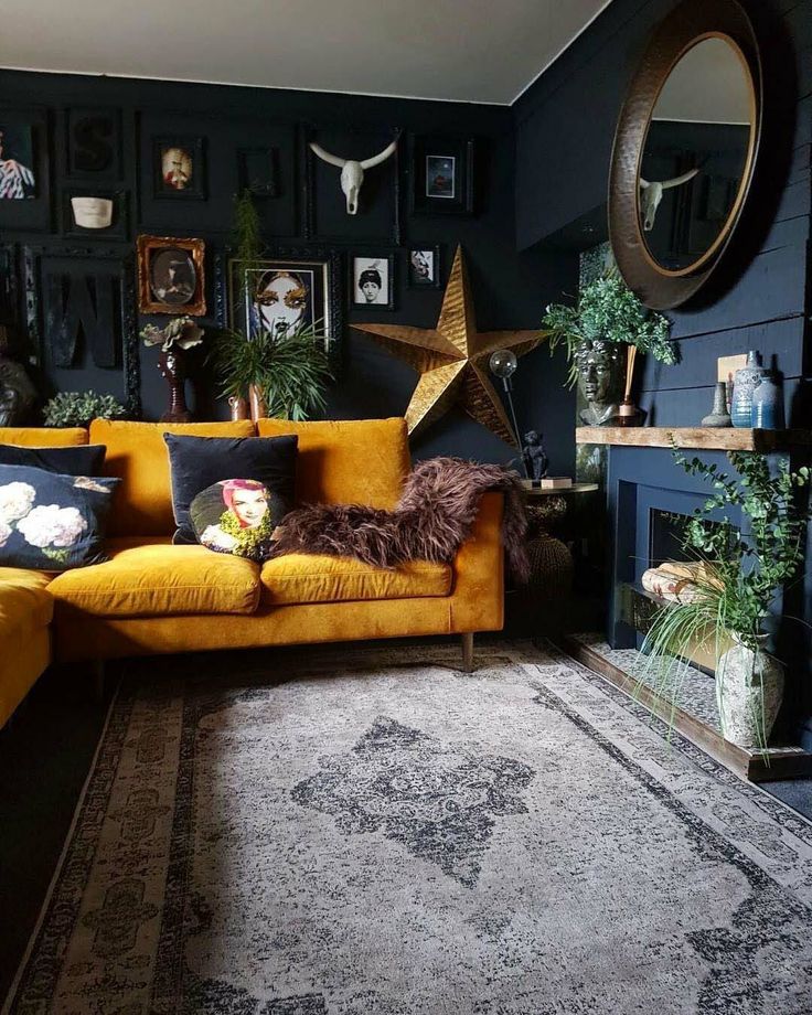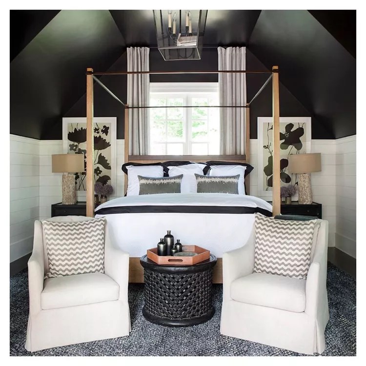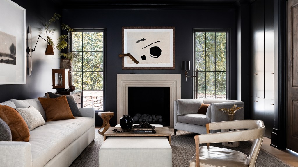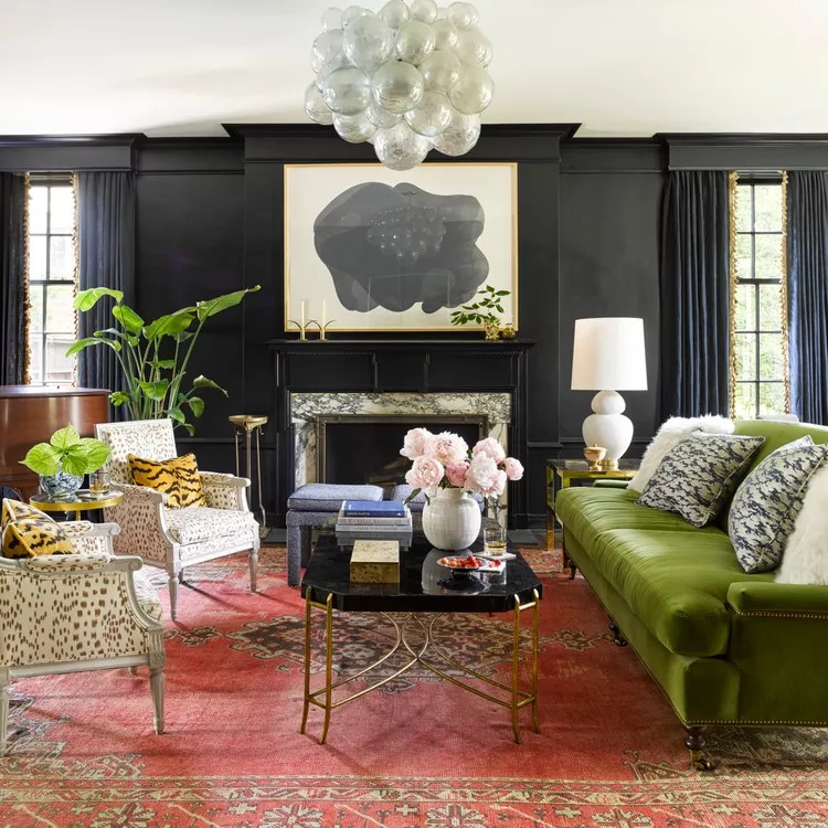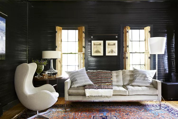 I have always been a big fan of color, and I think decorating with black is one of the most impactful, classy colors out there. Sure, it can conjure up visions of vampire vibes, but used judiciously, it can also be calming and intimate feeling. Of course, if black is too severe for you, navy, charcoal, and deep ink purple work just as well (if not better). The use of very dark colors on walls makes large spaces feel more cozy, classes up small spaces, and makes light, neutral furnishings really pop. Black also makes a great foil for brightly-colored pieces. And in a mostly white space, black is a great way to highlight a feature to which you want to call attention like a fireplace or super high ceiling or a gallery wall. Using black furniture or accents in an all-white room is also a great way to anchor the space and give it dimension.