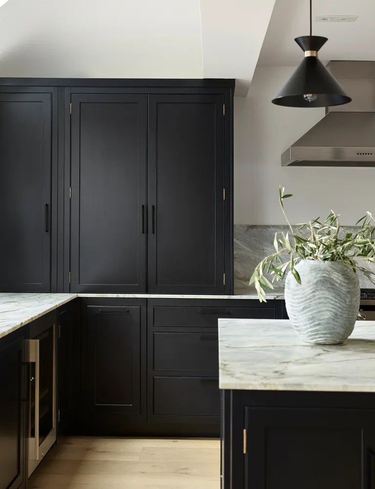 The smallest bedroom in our house is painted dark charcoal. My son wanted black but I thought that could be a bit too stark for such a small space, though I think now it would have been fine since the charcoal is actually really dark anyway. He thinks it feels like a cozy den in his room and it helps that the woodwork is white and his bedding is white with some black. When we finally get around to remodelling our 1990s kitchen, I will be considering black for our cabinetry. My thinking is choosing such a classic colour will give it longevity even if I change up some of the details within the kitchen over time.