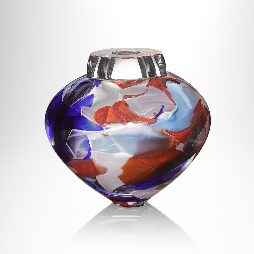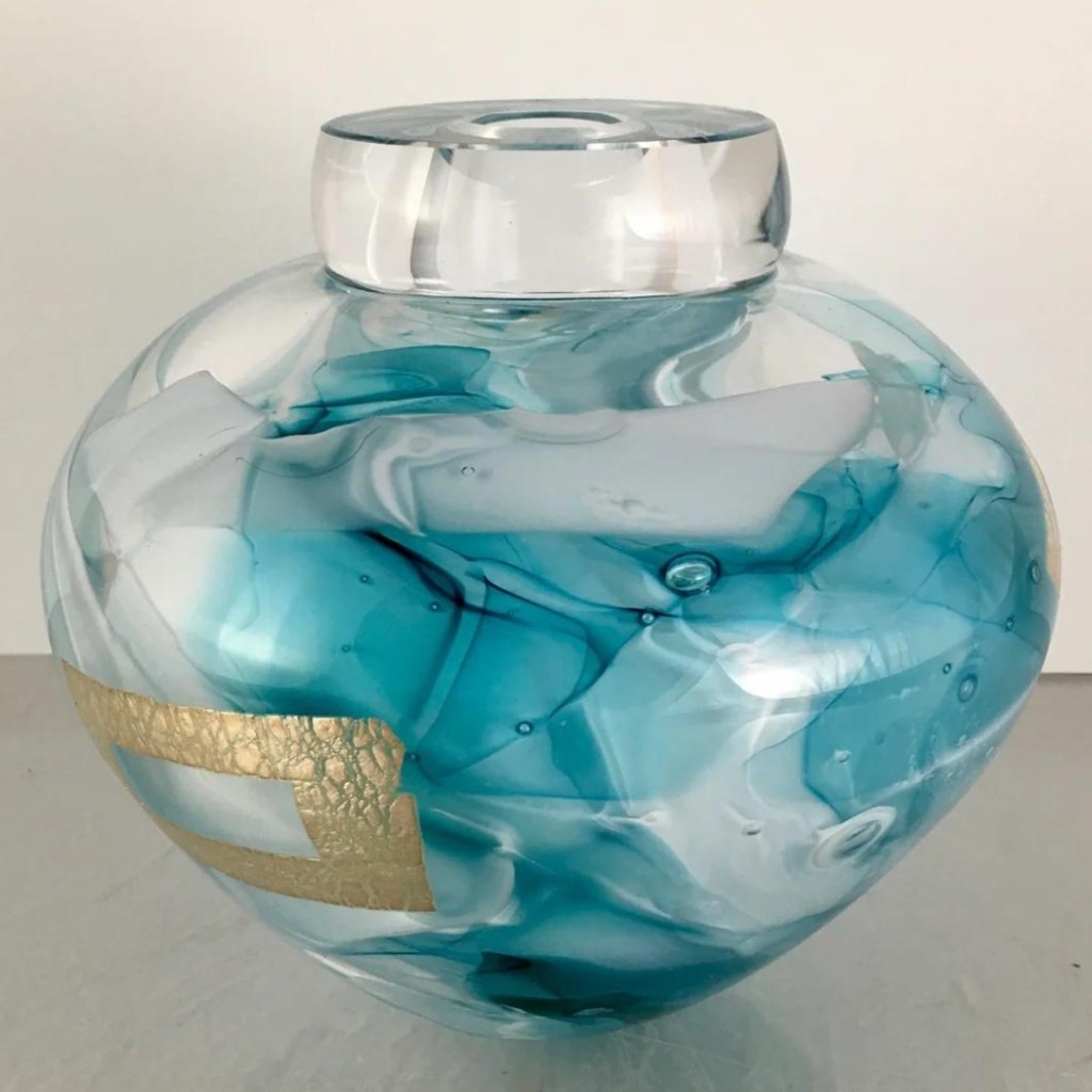 10/20/20: I recently discovered the magnificent glass vessels by Randi Solin. A master of the contemporary American art glass movement, Solin also incorporates elements of Venetian glass work in her striking pieces. Working layer upon layer, she builds her pieces much like a painter does. She finishes off each piece by lopping off the top and creating a highly-polished cross-section of the layers.