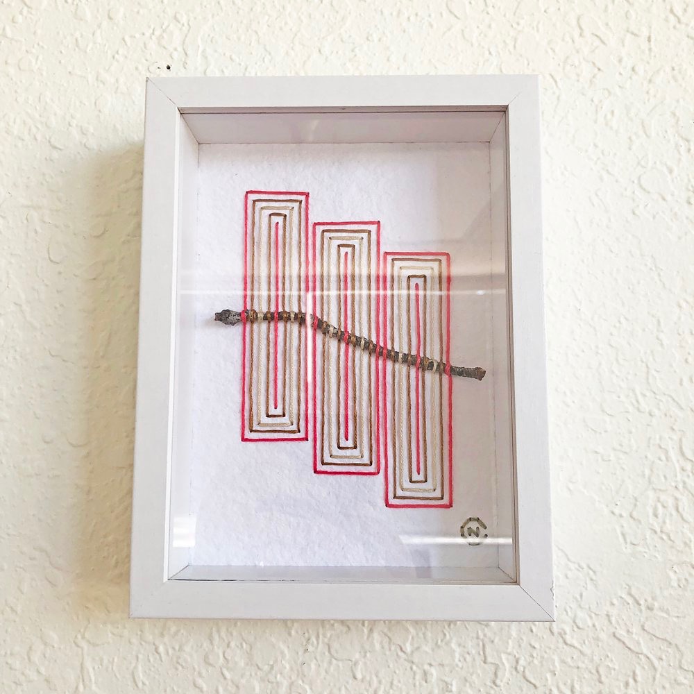 I love the pieces that incorporate sticks. I think those have a wonderful balance between the organic forms of the sticks and the precise control of the embroidered lines.