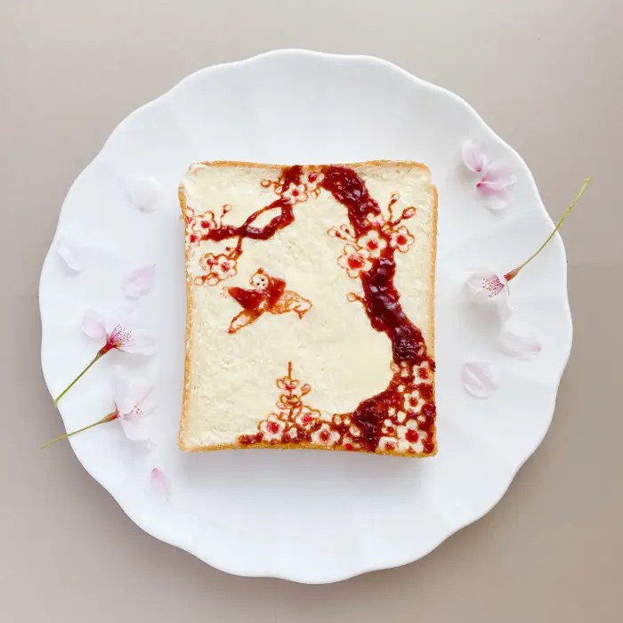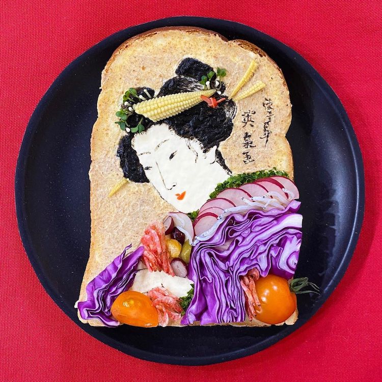 Today, we’re looking at some next-level food art by Japanese artist Manami Sasaki. The COVID-related lockdown in 2020 made many artists turn to materials they had around the house, and Sasaki turned to… Toast. You read that right. Using edible art supplies including squid ink for drawing fine details, the artist has created a remarkable range of art-on-toast. But while Sasaki’s styles may vary, most of her works harken back to traditional Japanese art.