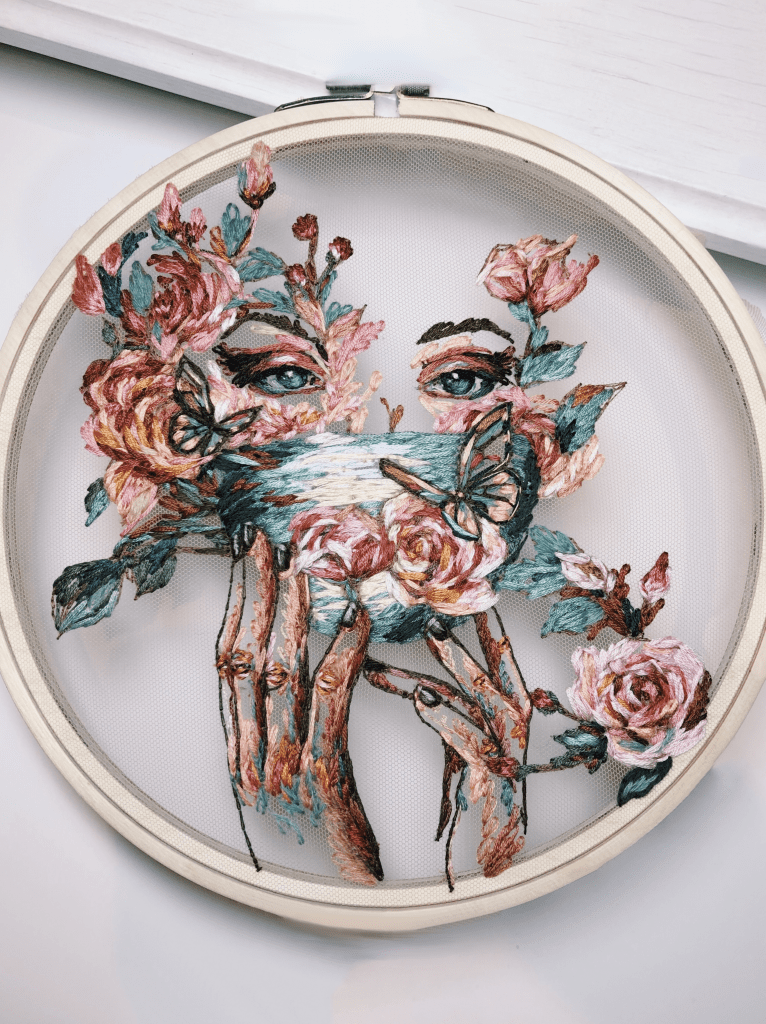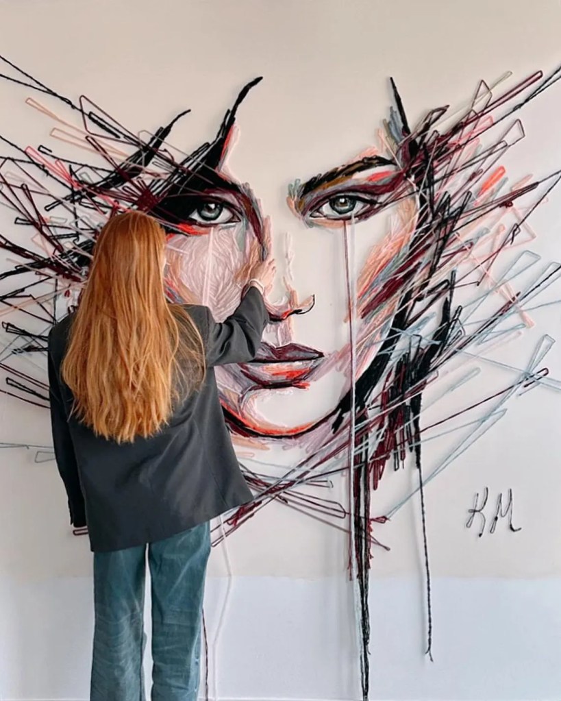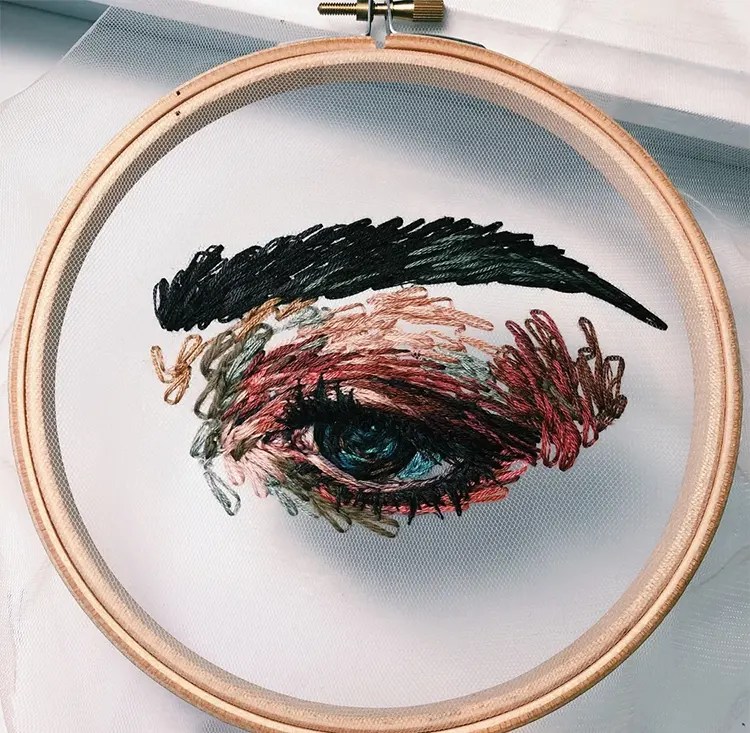 Self-taught embroidery artist Katerina Marchenko uses hoops (and occasionally entire walls) to embroider remarkable three-dimensional-looking patterns and portraits. I find her hand and eye studies particularly compelling.