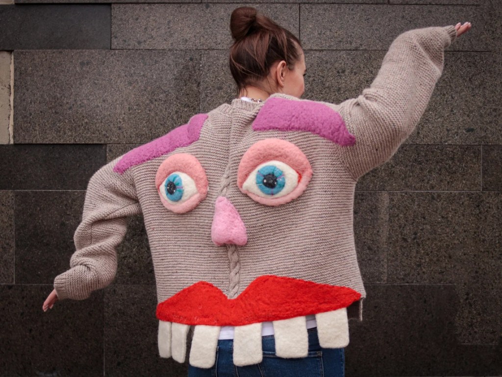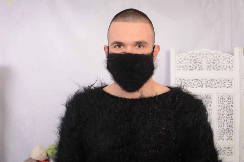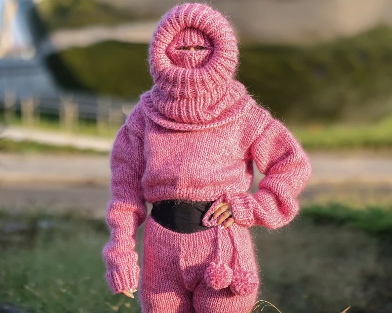 Sweater with matching MOHAIR FACEMASK. All I can say is thp-pth-tptpp-pwthth