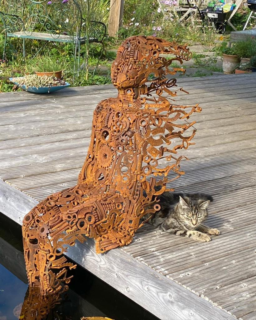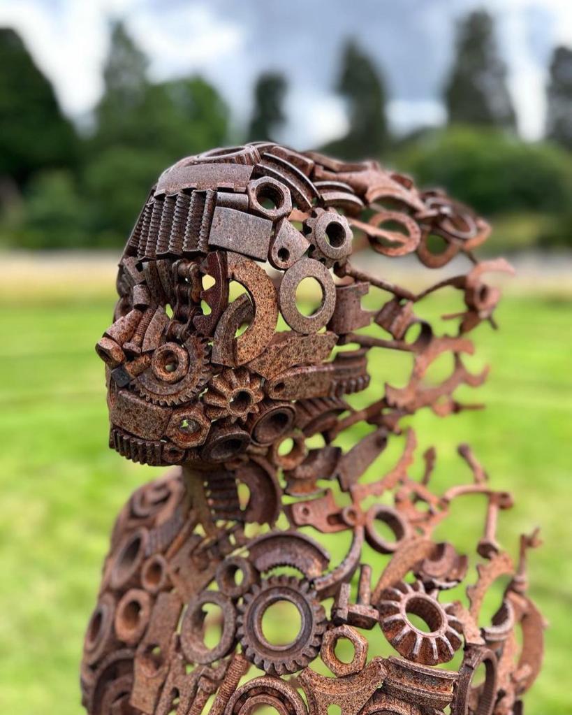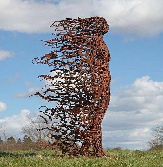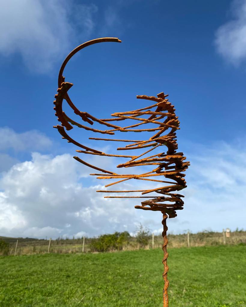 I think these are wonderful! I love how dynamic and organic they are despite being composed of metal and, from the looks of it, found objects. I think they work in the natural landscape partly because of the juxtaposition but also because the rusty finish means the hues are harmonious.