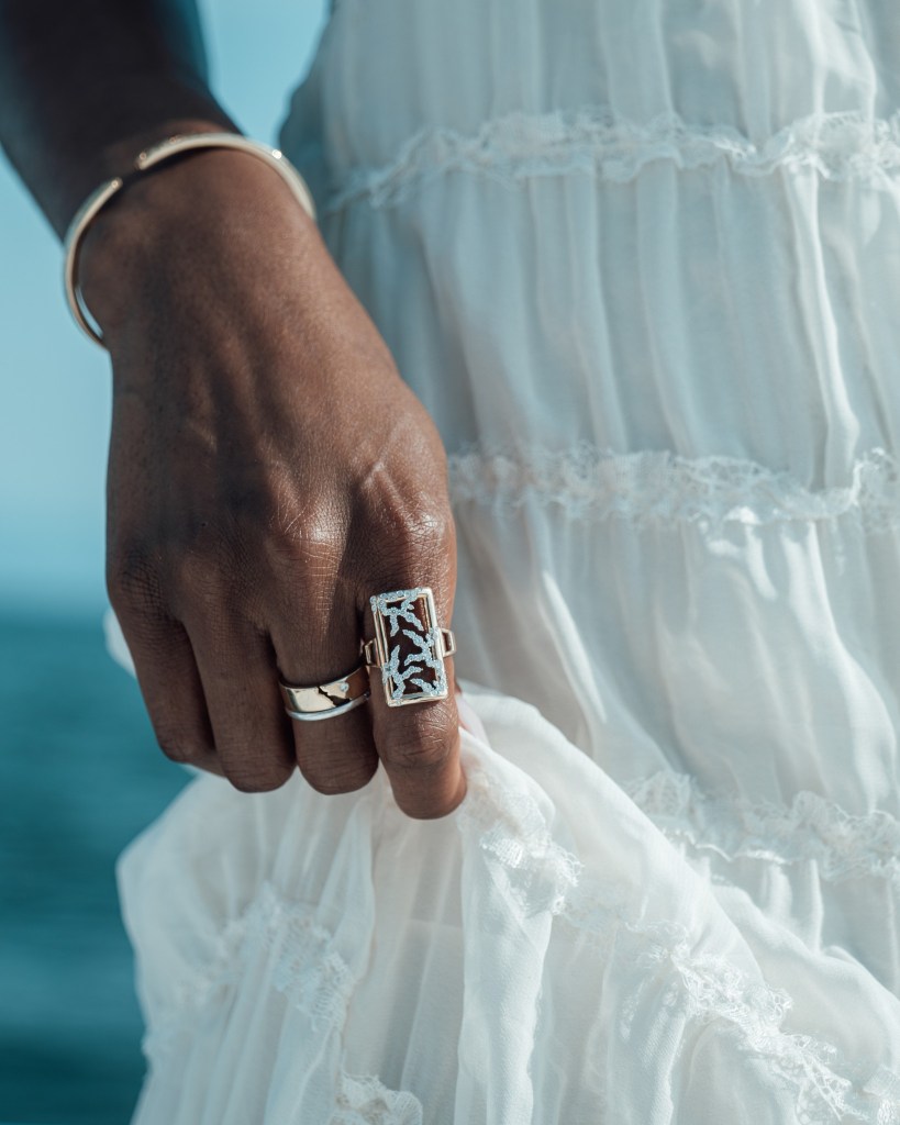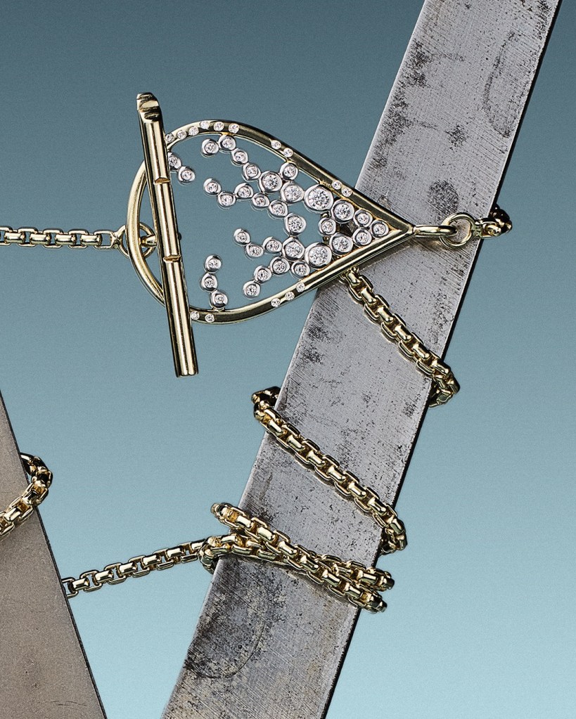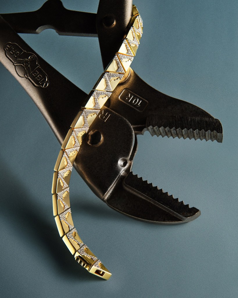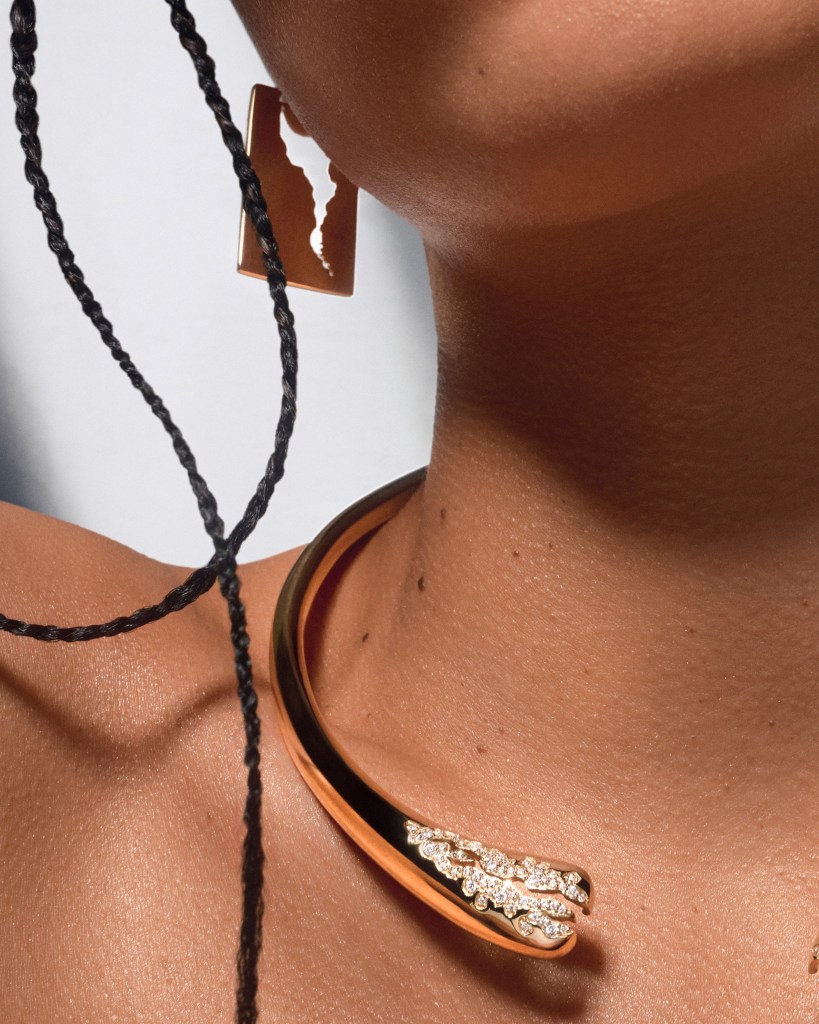I think it’s all magnificent, but I am particularly attracted to her Broken collection, which features hammer-set diamonds in precious metals, but the pieces appear to be shattered in places. I’ve never seen anything like them, and I just want to cover myself in them.