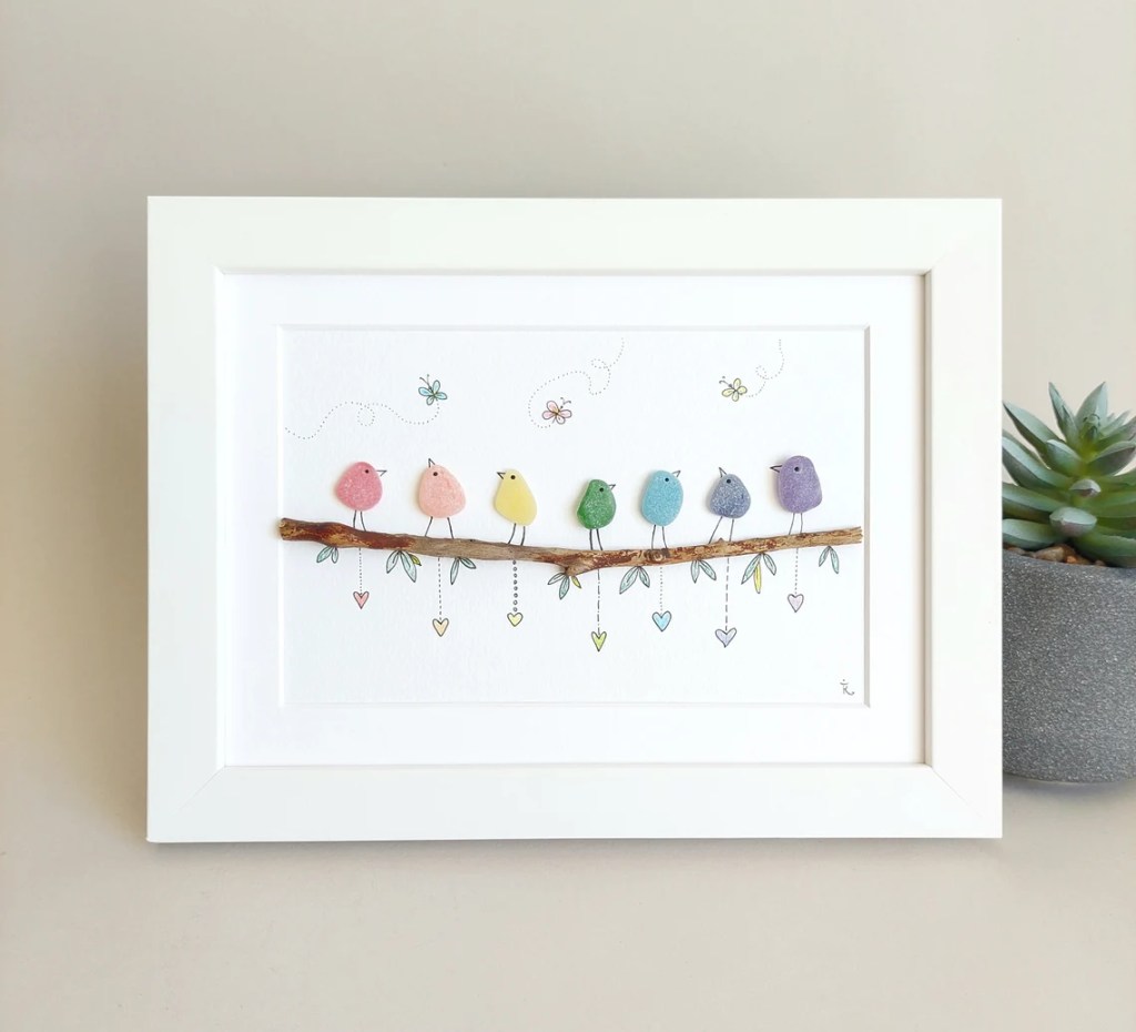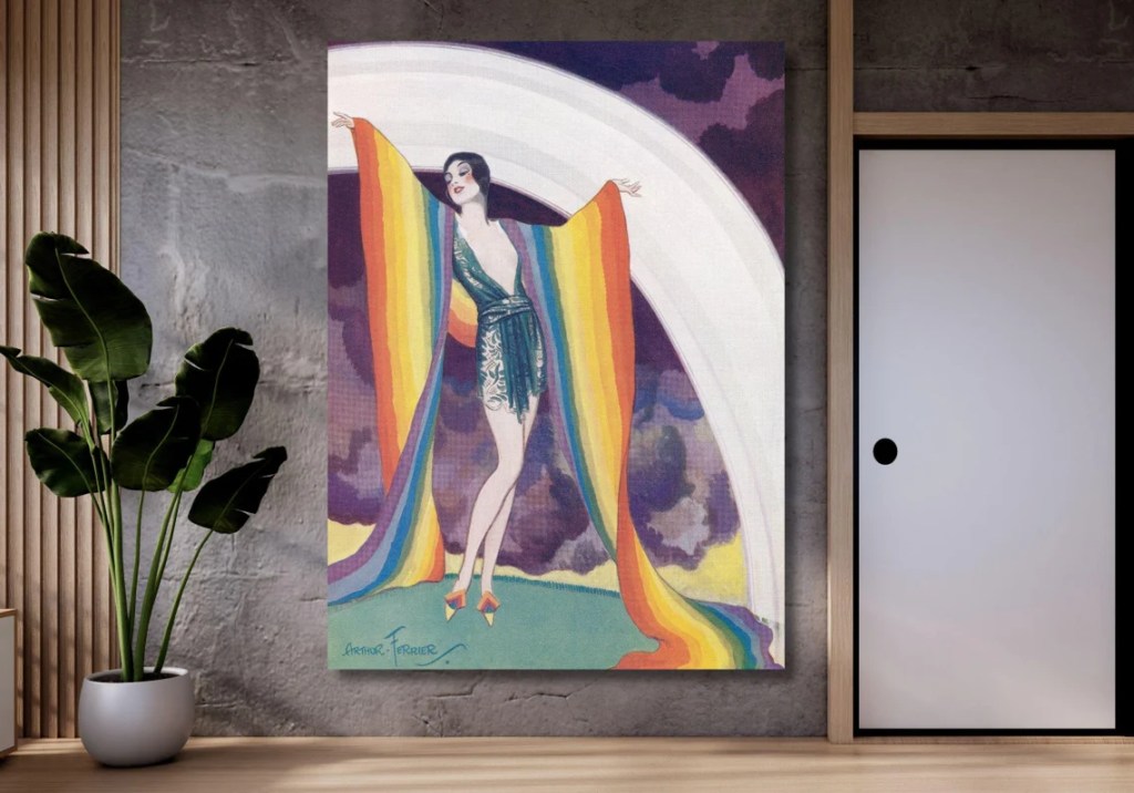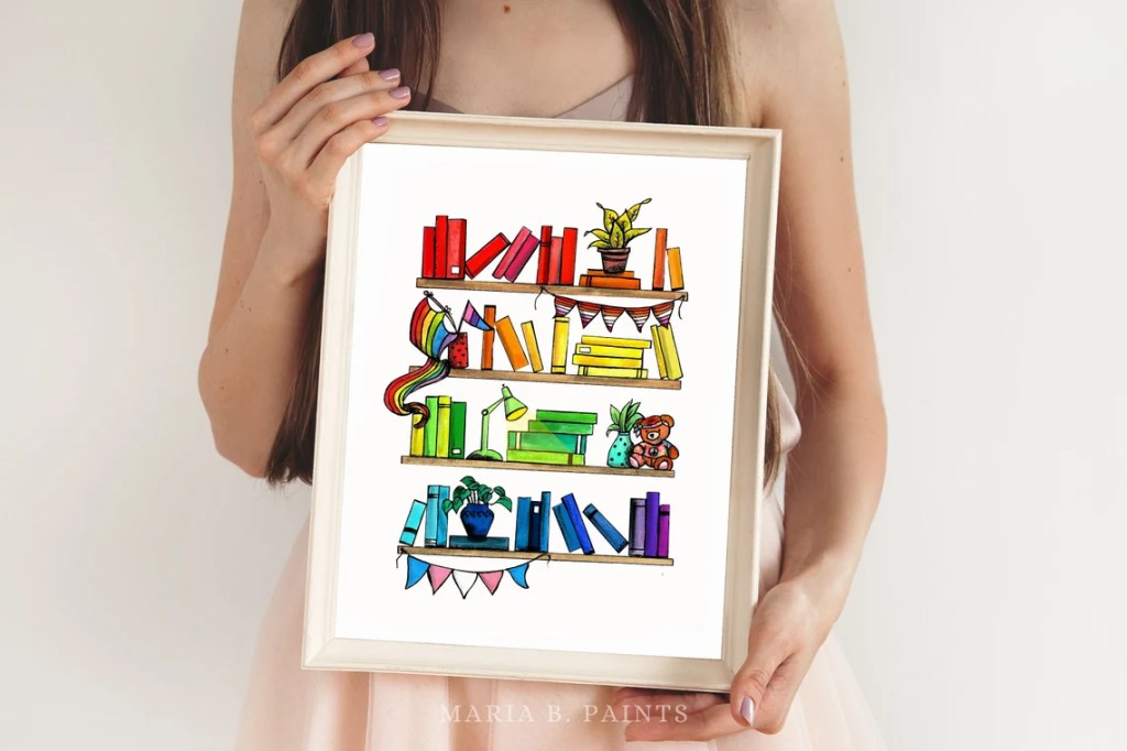 Rainbow pebble watercolor print by SuziBlueDesignsLED neon sign I’m having trouble resisting by HaoduojinlettersignBook-lover’s rainbow print by WatercolorBabyPrintsSuper yummy (but very expensive*) 3D ice cream art by GlossyArtStudioWorks *I’m not suggesting it isn’t worth the price, just that it’s out of my budget. (less expensive version here) (and here) (and here) (and tiny version here) What can I say? We gays love our ice cream!Modern print that comes in different pride flag versions by TheProudPaperNeed a frame for your pride print? Look at this gorgeous maple-and-resin frame by NorthwoodFrames!If I were going to hang any print in my house, it would be this glorious, 1928 beauty from Tatler Magazine by Deco artist Arthur Ferrier! Huge canvas print by IconiCanvaShopNot exactly art, but how cute are these pins? I’m getting them so I have them for next year. By MoPinsA tremendous sentiment in an adorable format! By NikoBrownStudioPride art for the mid-century modern set! By MaggieSeeeSuper cool wood block art by WoodenPixArtAdorable sea glass birds on a branch by YourBeautyArtGreat way to incorporate pride in your everyday life! Progressive Pride Flag Planter by TheLAGarden