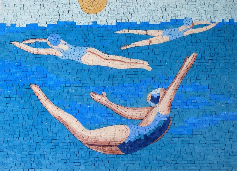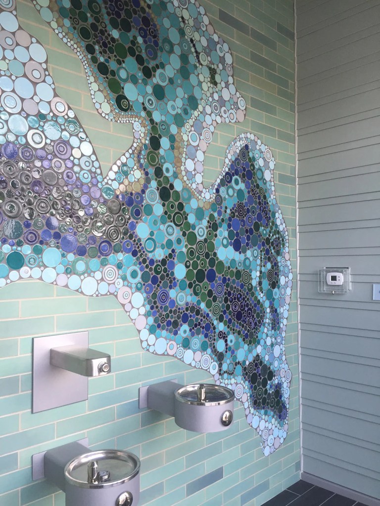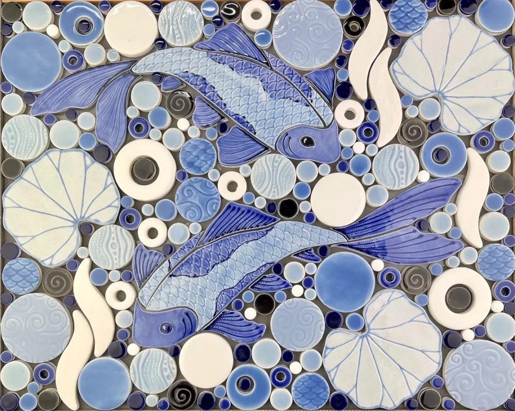 If you’re going to go fishy, go all the way! There’s nothing cutesy about this “Marine Ballet” mosaic. By MEC Artworks
