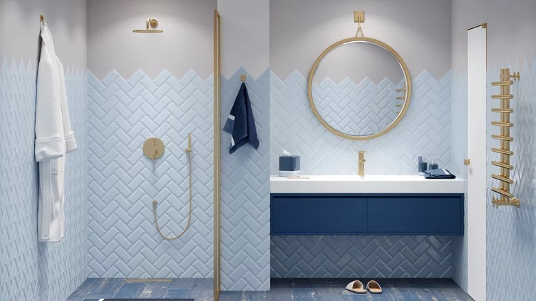 Of course, if you decided that all that nautical stuff was too cutesy, you could just hint at water using cool blues with brushed brass accents and a porthole mirror…
