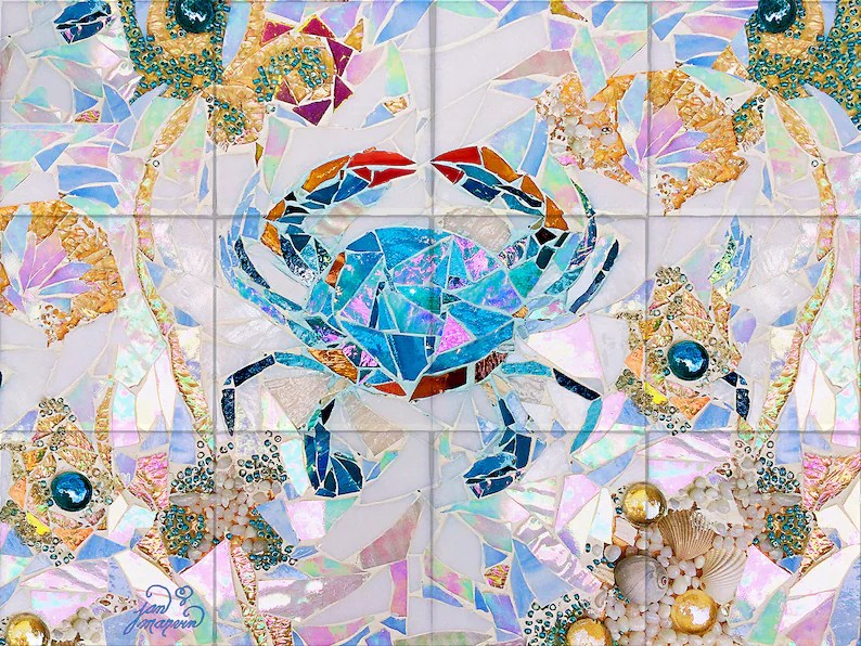I find this OOAK crab mosaic really lovely and stylish! By Jan Marvin Art Studio