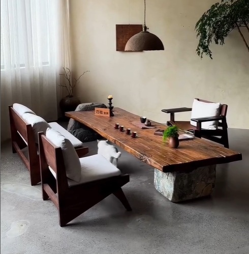 I love the use of natural textures in these pieces and the way they balance the man-made (or at least man-formed and -sculpted) with the rough and raw elements of the materials. The only drawback is how impractically heavy some of those pieces must be. I would get a hernia trying to vacuum.
