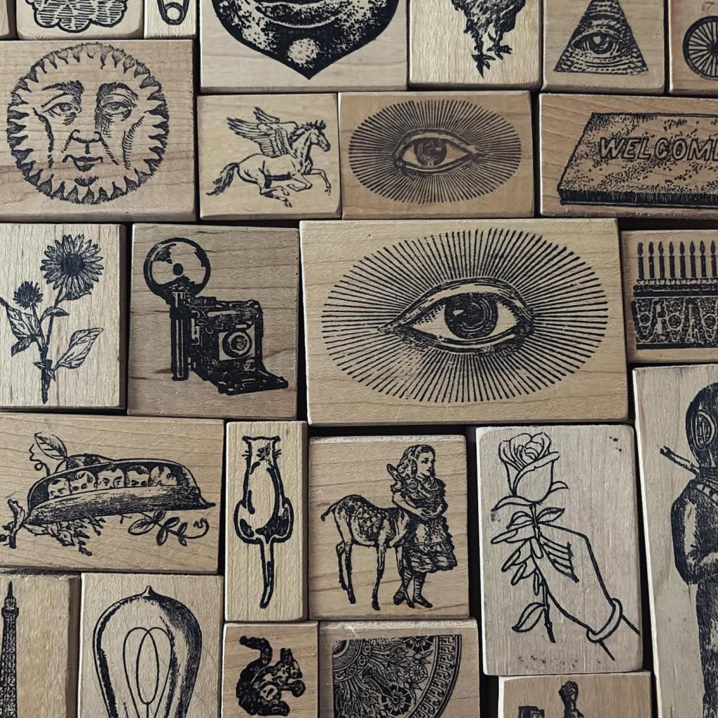 Casey is thoroughly committed to his craft, hunting through vintage books, magazines, and encyclopedias for crisp images which he turns into his beautiful, handmade rubber stamps. While he does have a few modern designs, the vast majority of the stamps are more vintage in style. Casey also does custom work, including logos, customer-request images, and stamps for invitations and the like. The magical tiny shop is stuffed from floor to ceiling with his handmade rubber stamps which you can’t find anywhere else!