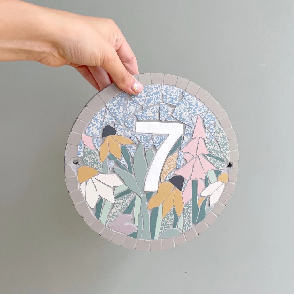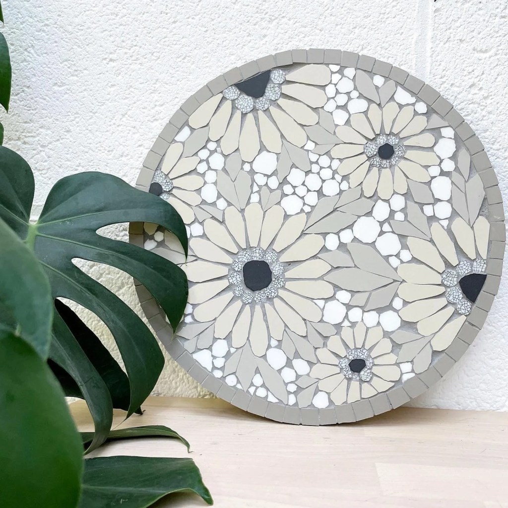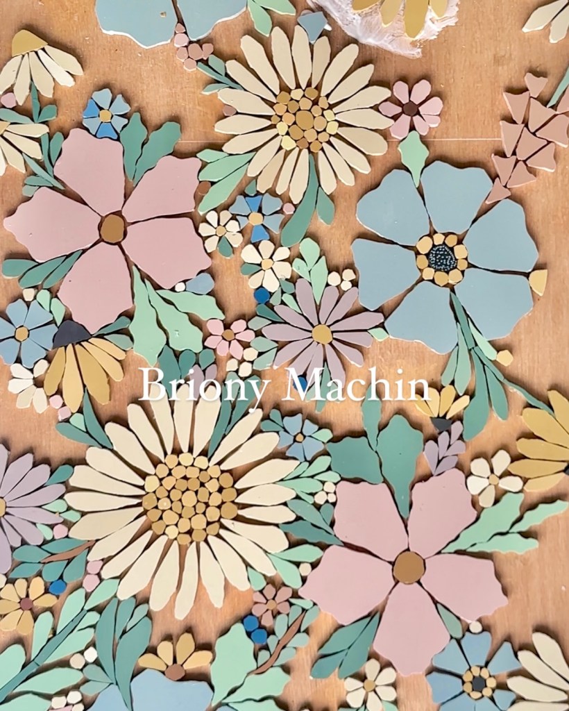 I like how rugged her approach to mosaic is despite flowers being her subject matter. The pieces are pleasingly chunky and it’s effective even though flowers are traditionally seen as delicate.
