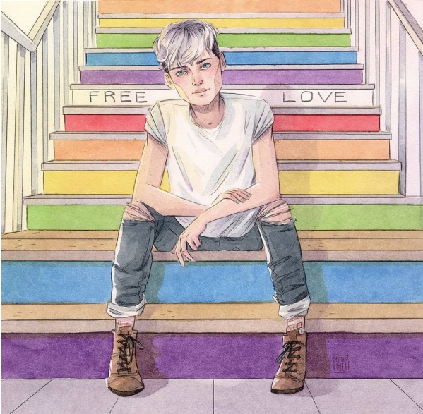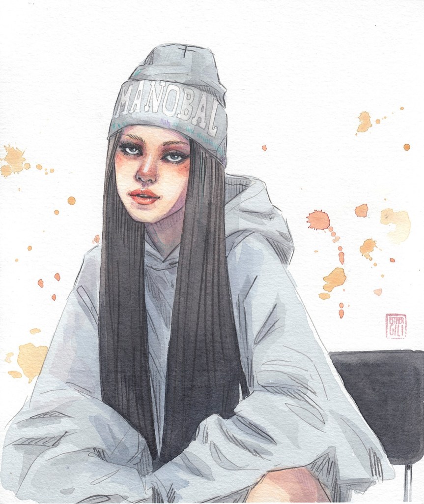 I am really attracted by her sweet, fresh artistic style. Her characters, even when depicted in moments of introspection, seem open and optimistic, which is kind of at odds with what she describes as her antisocial nature. It’s amazing to me that someone who suffers from such crippling shyness could produce such approachable art.