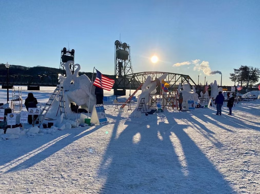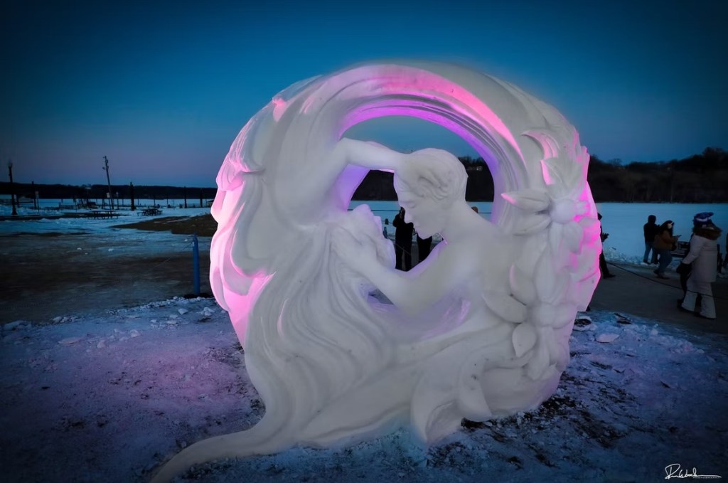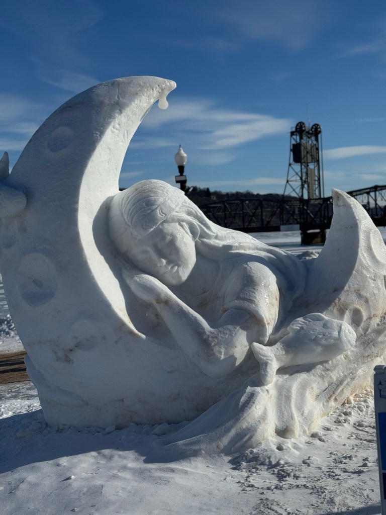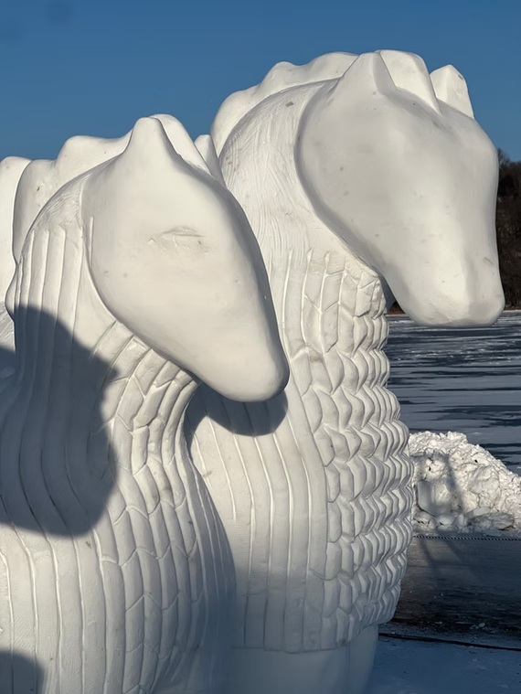If you live in the Northeast of the U.S., we’re currently up to our eyeballs in what the news always calls snowmageddon. In other words, it’s been snowing pretty hard on and off (but mostly on) for the last 24 hours. The TV is full of winter storm-related doom and gloom, so it seemed appropriate to share something that celebrates snow rather than dragging it. Welcome to the World Snow Sculpting Championship, which takes place in mid-to-late January every year in Lowell Park in Stillwater, MN. (And you know in Minnesota, they’re not afraid of snow…). The championship actually ended yesterday, so there’s still plenty to appreciate. Hosted by The Greater Stillwater Chamber of Commerce Foundation, the competition has been a hit with winter appreciators the world over since its creation in 2020. The championship was actually the brainchild of the city’s mayor in response to the Covid shutdown.