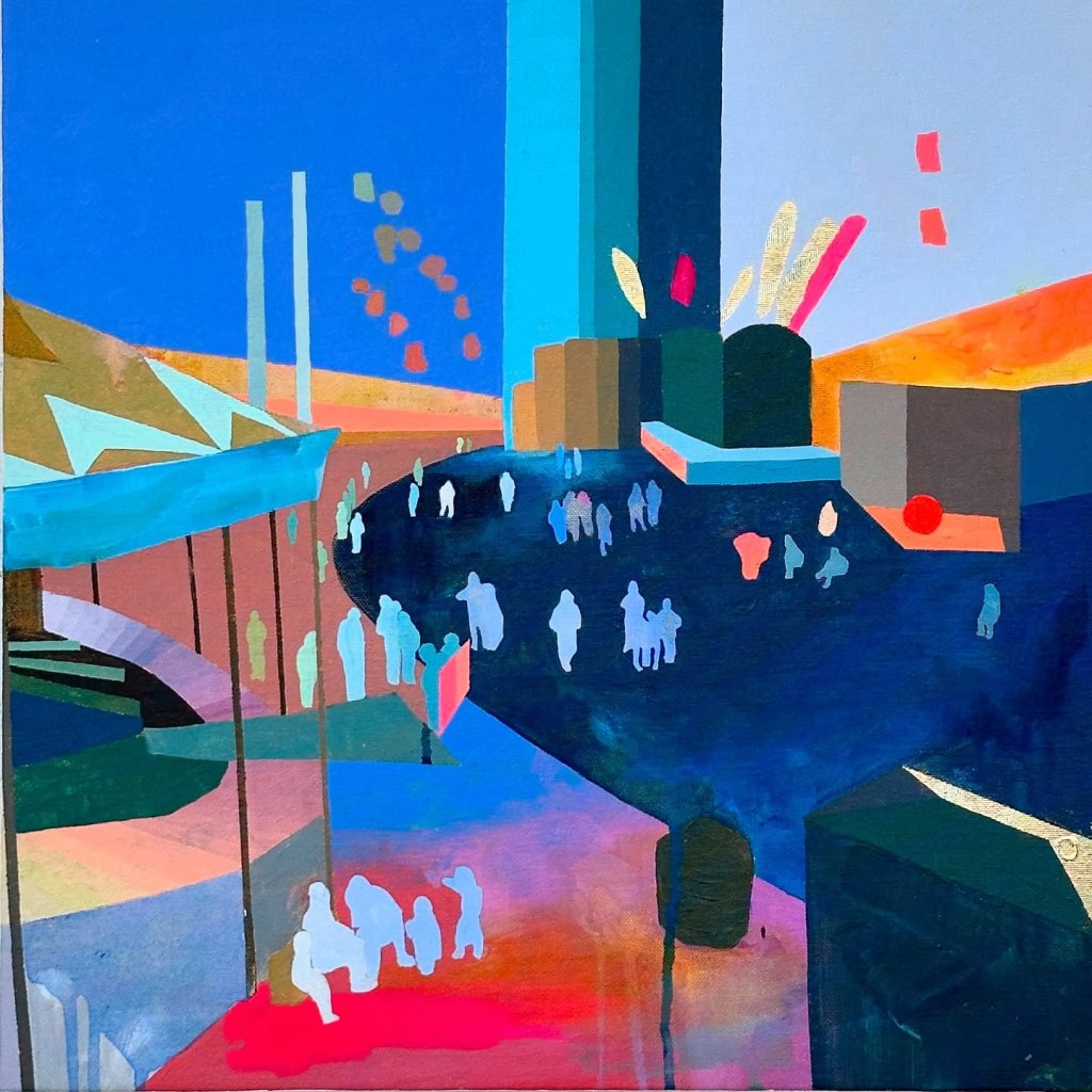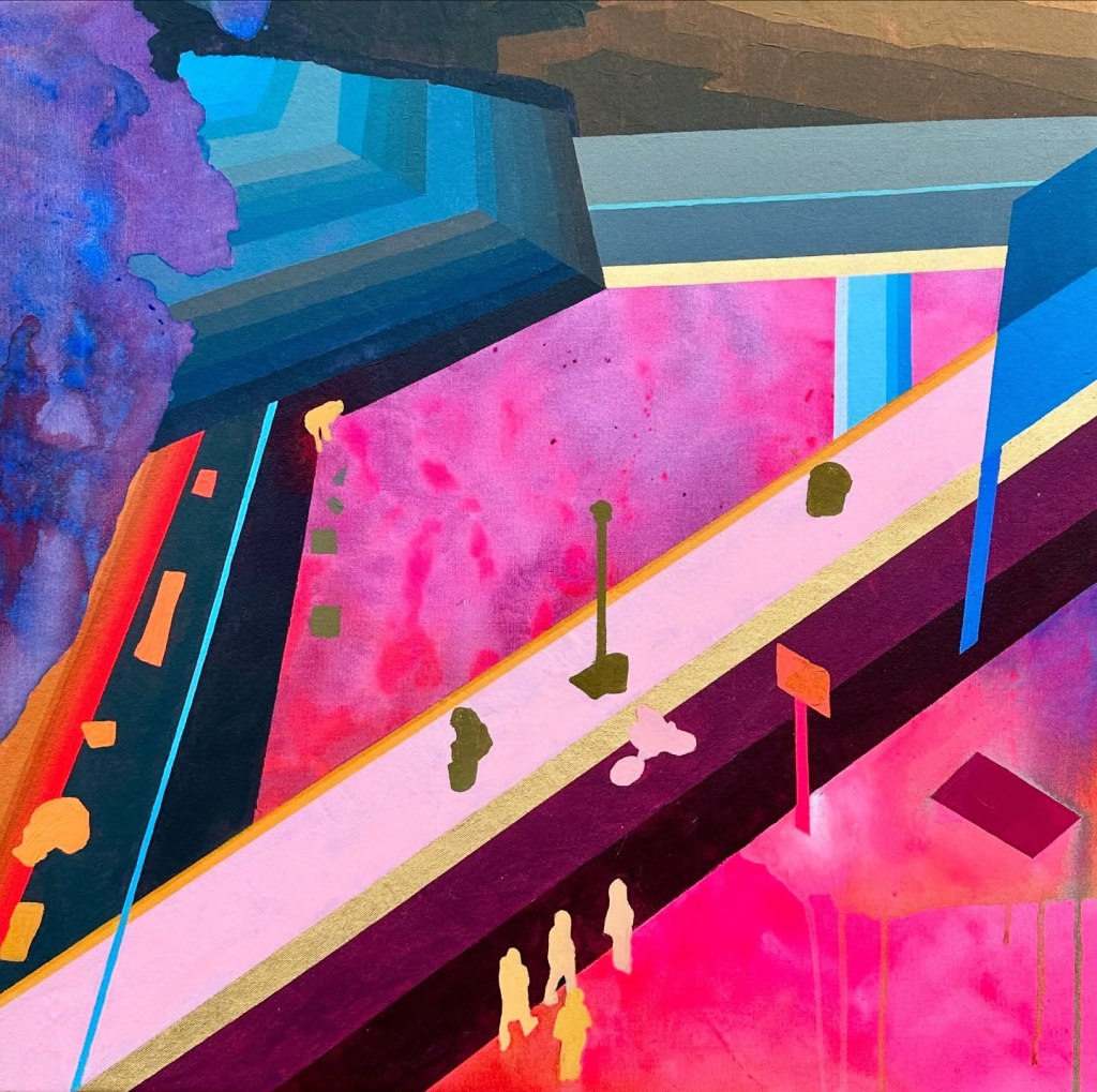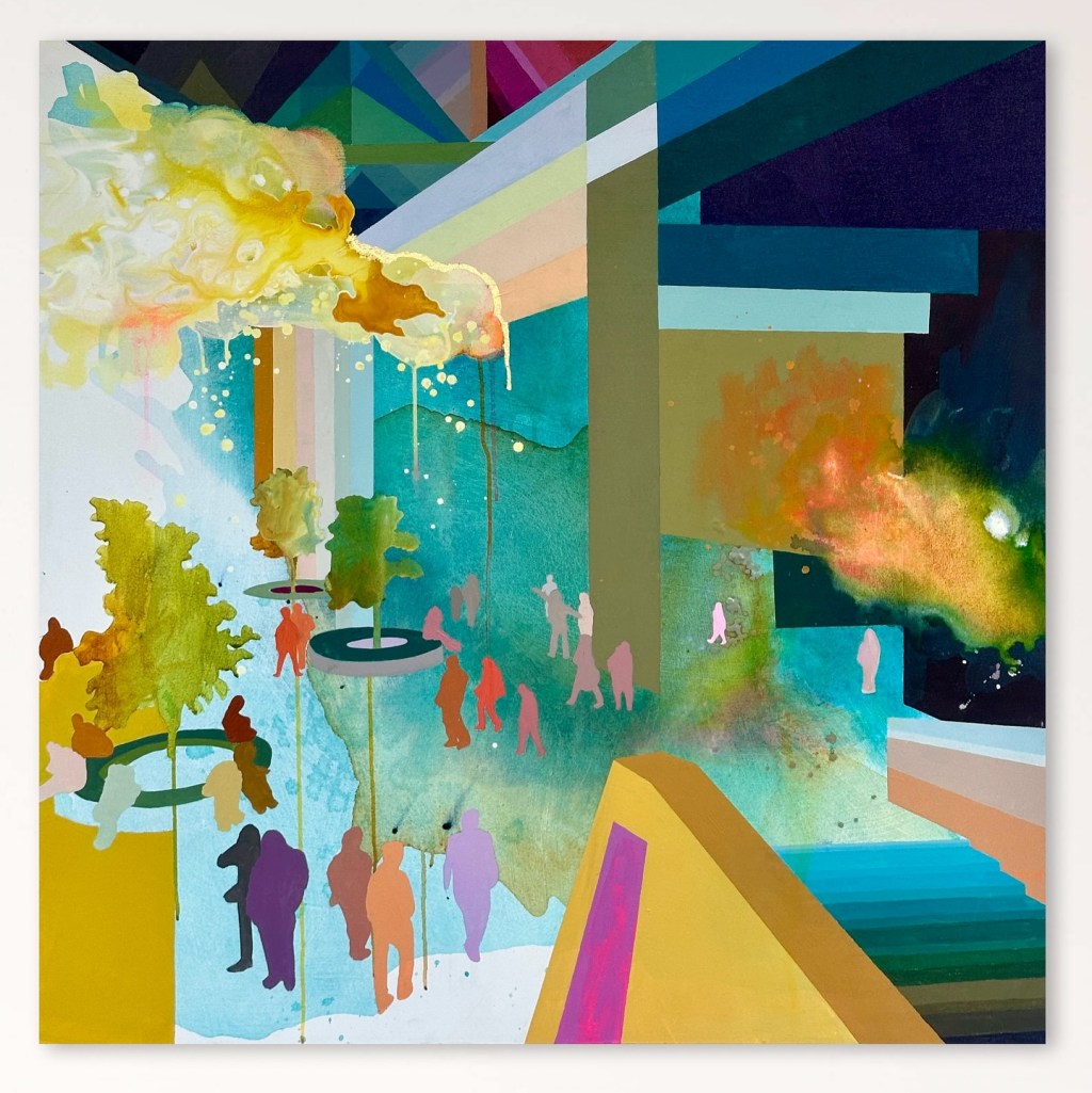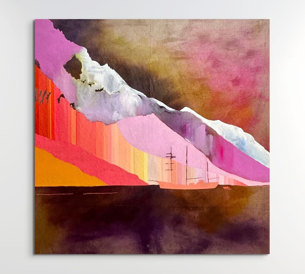 Osmond’s original art training was in welding, and I can see how that has informed her paintings. They’re more about shapes than fine details. After school, Osmond had a job taking helicopter trips for a GPS company, and that’s when her love of aerial views began. What an interesting trajectory her life has taken!