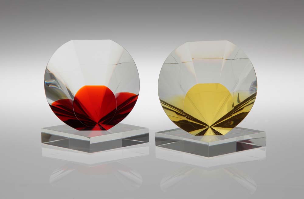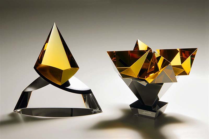 2/11/17: I first saw this artist’s work when I was searching for pieces for my post Chess (Set) Grandmasters. These are the precisely-cut, highly-polished optic glass pieces by Czech glass artist Vlastislav Janáček. In 1999, after years spent teaching glass cutting at the world-renowned Secondary School of Applied Arts for Glassmaking in Kamenicky Senov, Czech Republic, Janáček left teaching to pursue his career as an independent artist.
