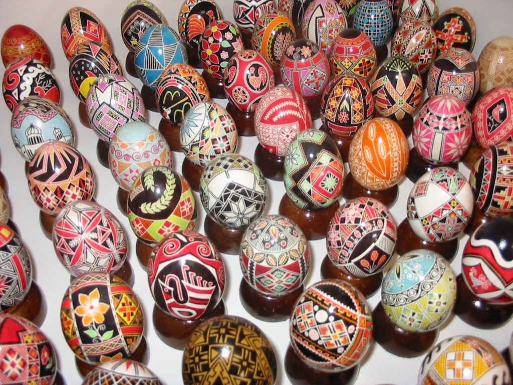 Though the materials used seem to be fragile, Pêssanka eggs are meant to communicate “the story of a hardworking, cultured, creative and above all great dreamer people who seek to transfer to the white surface of the egg, a very rich and peculiar symbology. Decided strokes, undulating forms, and colors of spring on the prairies and steppes, constitute the purest expression of feelings and desires for infinite peace, eternity, health, fortune, and belief in divine superiority.” (source: Pessanka Blog)