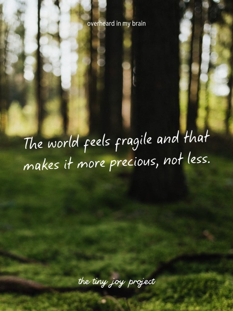 Every week on Wednesday, Wilder sends out an essay on presence and wonder and beauty. And each essay is accompanied with a list of tiny joys, “the little proofs that life’s still good, still trying, still full of magic when you pay attention.” I love this woman’s attitude!