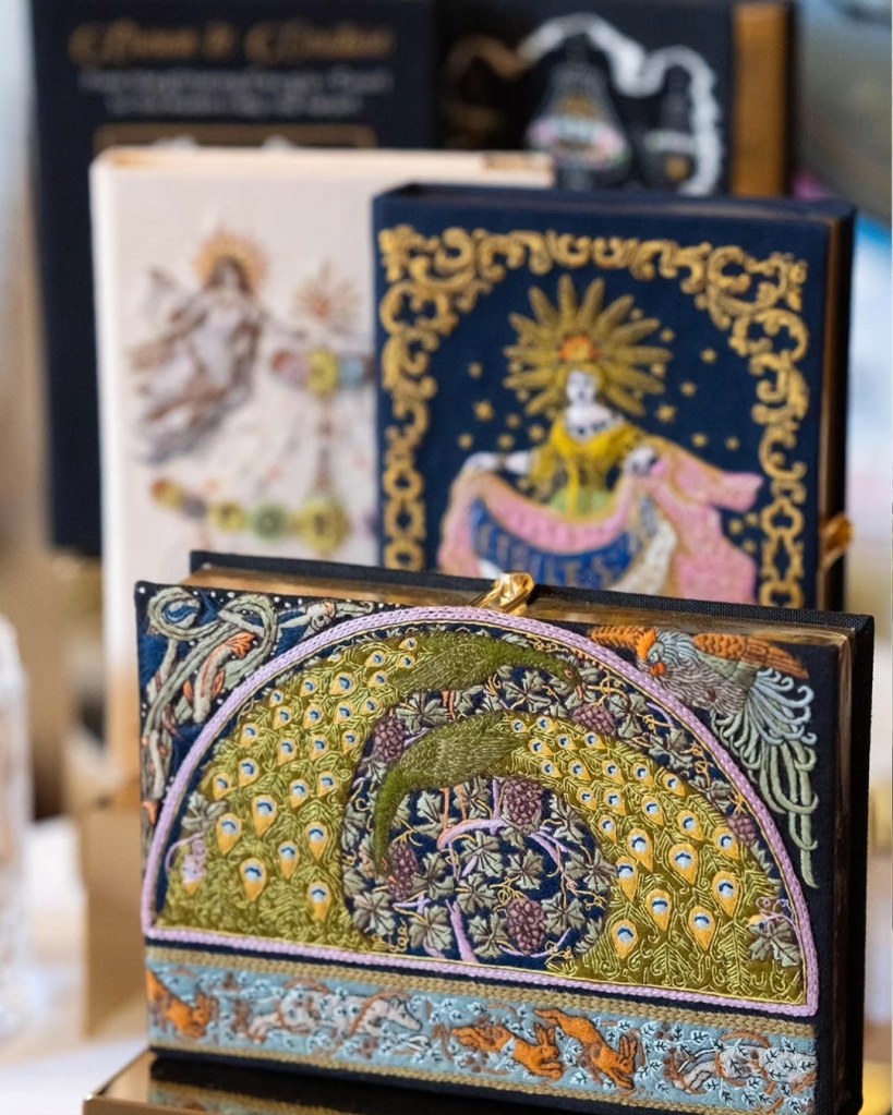 Olympia Le-Tan is best known for their whimsy but also for their durability and quality construction, not something I expected! I’m sure the high price tag is warranted, so I’ll have to content myself with drooling over pictures of the amazing clutches. Someone wrote that they could justify spending that much because in addition to being wearable art, the pieces also make great conversation pieces that double as home decor. Clever!